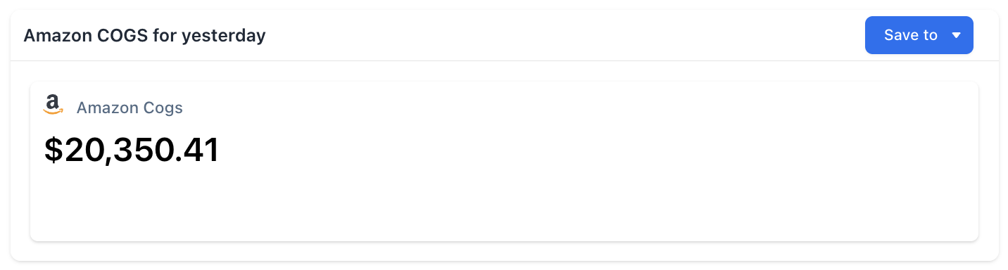 Amazon Cost of Goods Sold (COGS) represents the direct costs of Amazon orders attributable to the production of the goods sold.