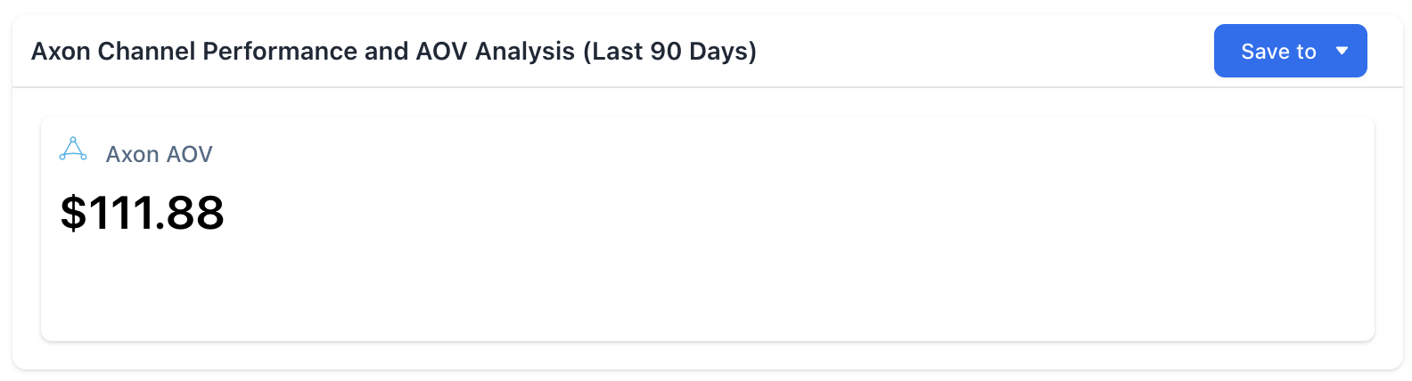 Axon Average Order Value (Axon AOV) calculates the average amount spent by customers per order, after shipping and taxes, as reported by Axon.