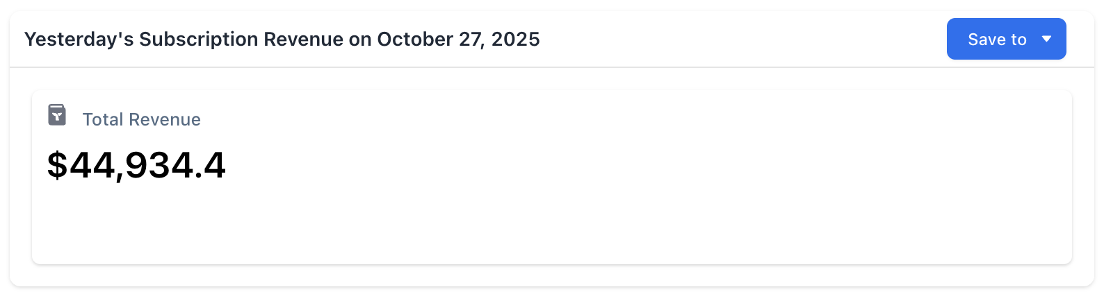 Subscription Order Revenue helps evaluate the strength and stability of your recurring revenue stream by capturing the total income from all active subscriptions: