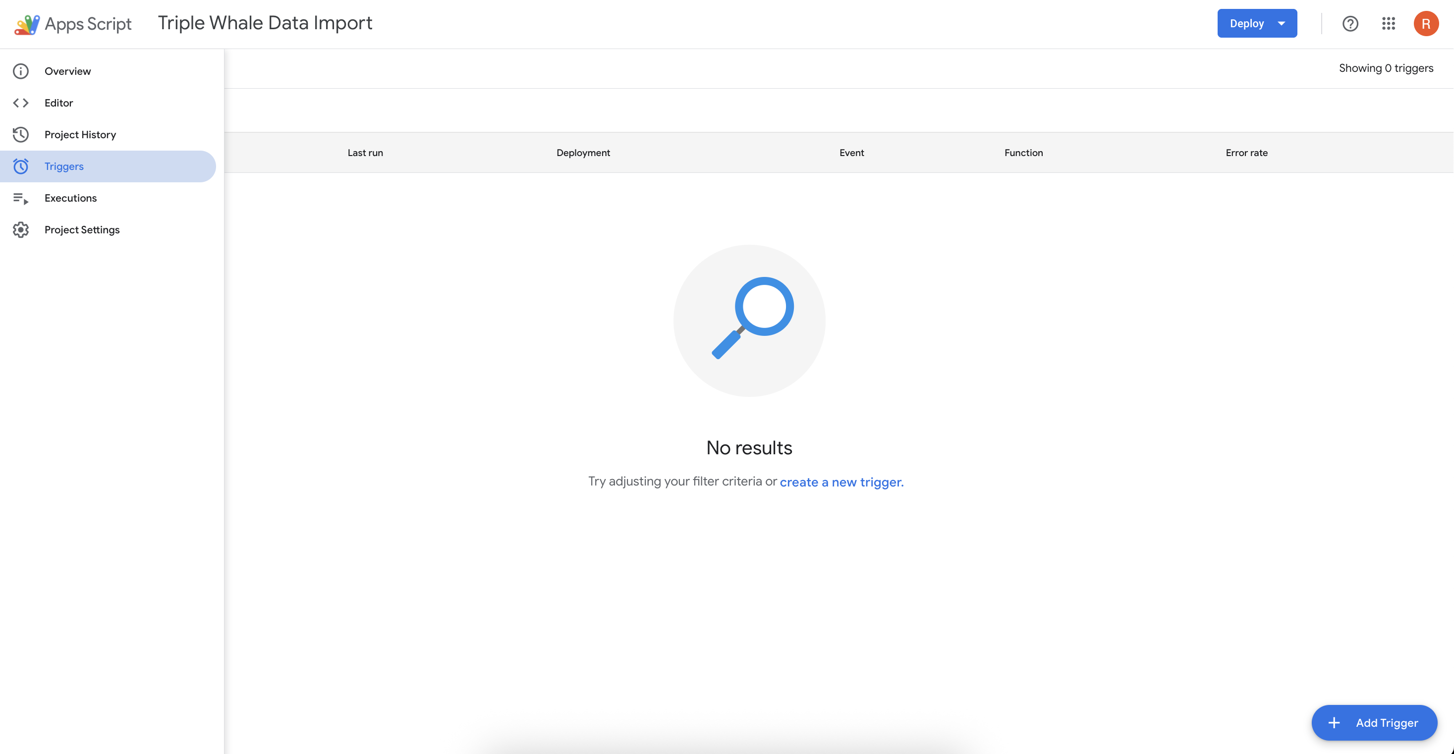 In the Apps Script Editor, select Triggers from the left sidebar.