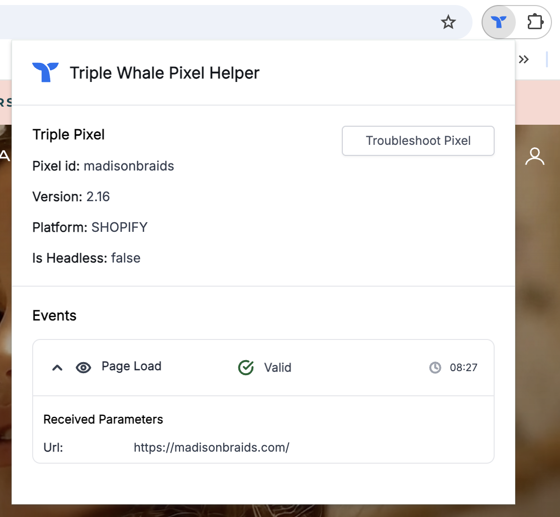 - Confirm that the Triple Whale Pixel is installed and loaded correctly